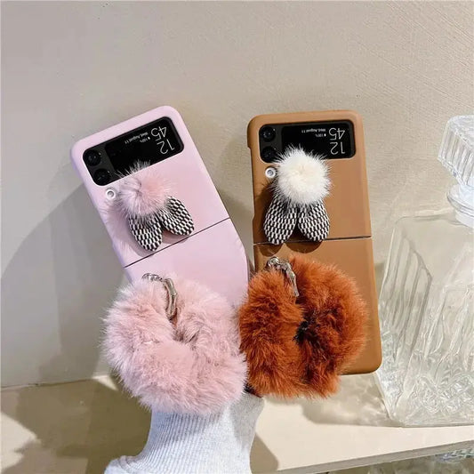 Bunny Ears Plush Fur Case For Samsung Galaxy Z Flip 3/ Z Flip 4 W273