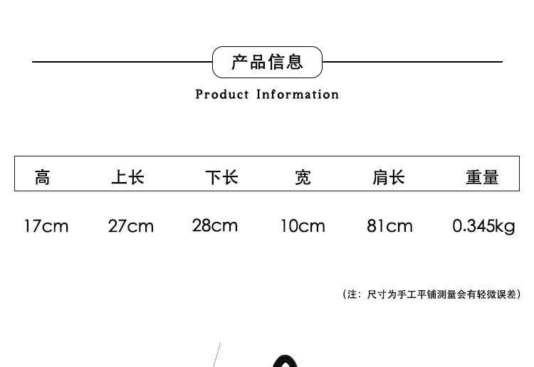 | Upper Length | Bottom Length | Height | Width | Strap Length |