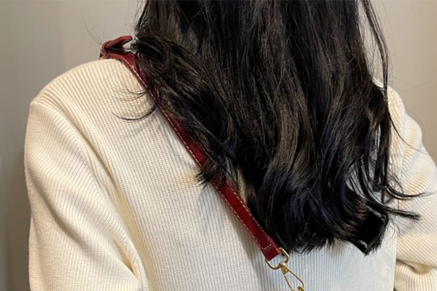 Crossbody Buckled Leather Bag Faux Flap