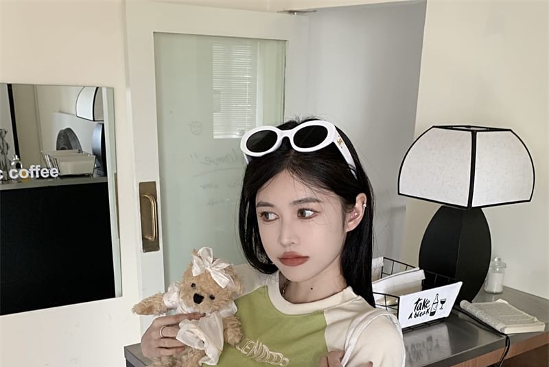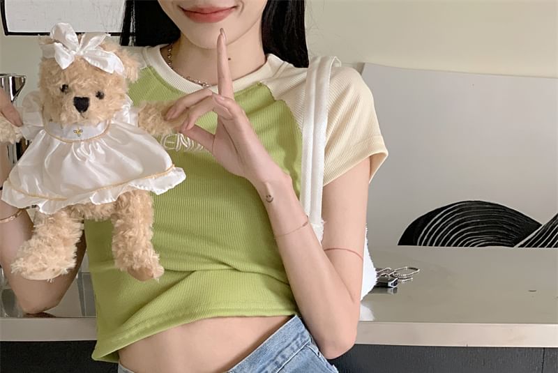 Embroidered Letter T-Shirt Crew Cropped Neck Short-Sleeve