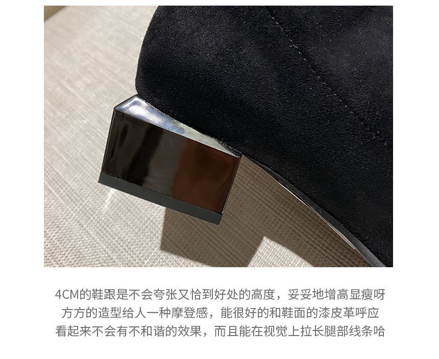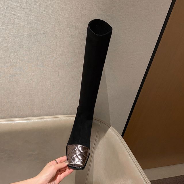 Knee-High Panel Square-Toe Boots Quilted Heel Block