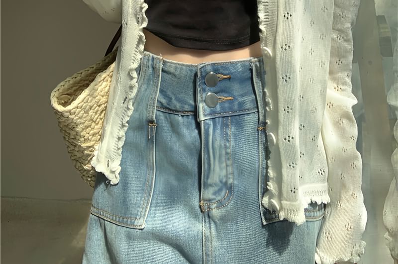 Plain Lettuce Edge Pointelle Knit Cardigan