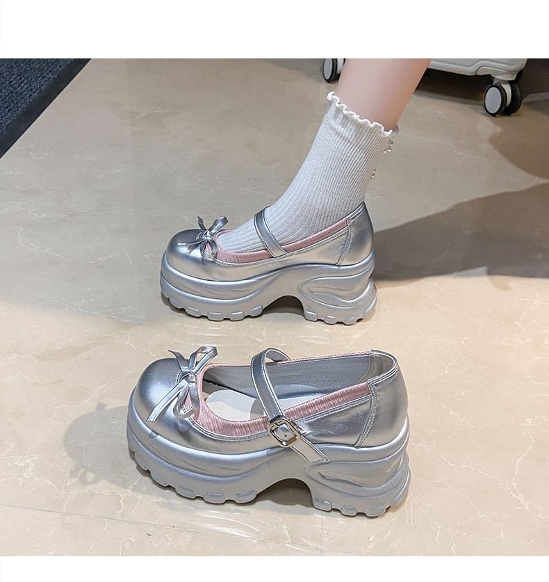 Platform Bow Accent Faux Leather Mary Jane Shoes