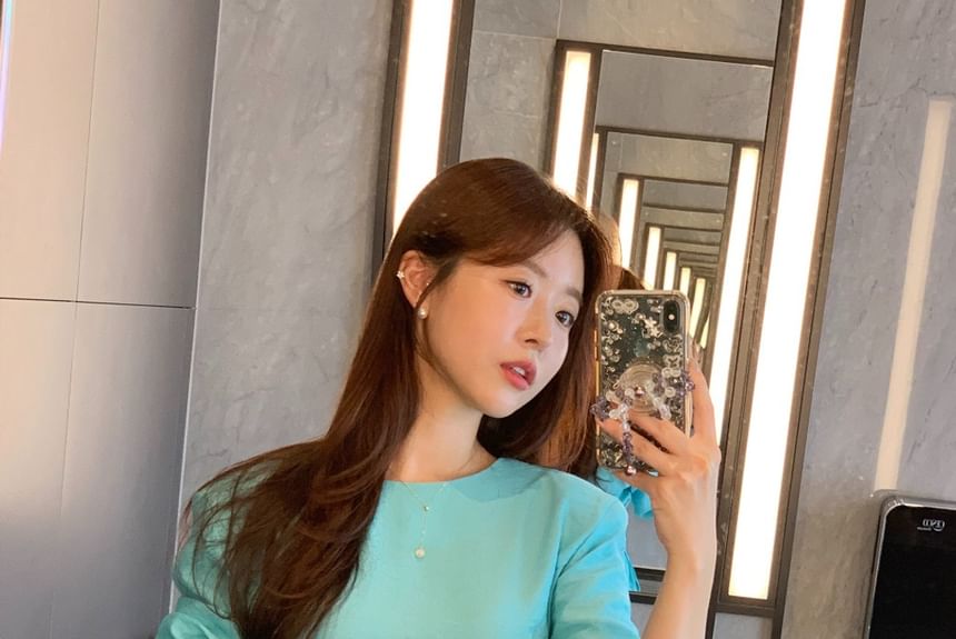 Long-Sleeve Round Neck Plain Belted Romper