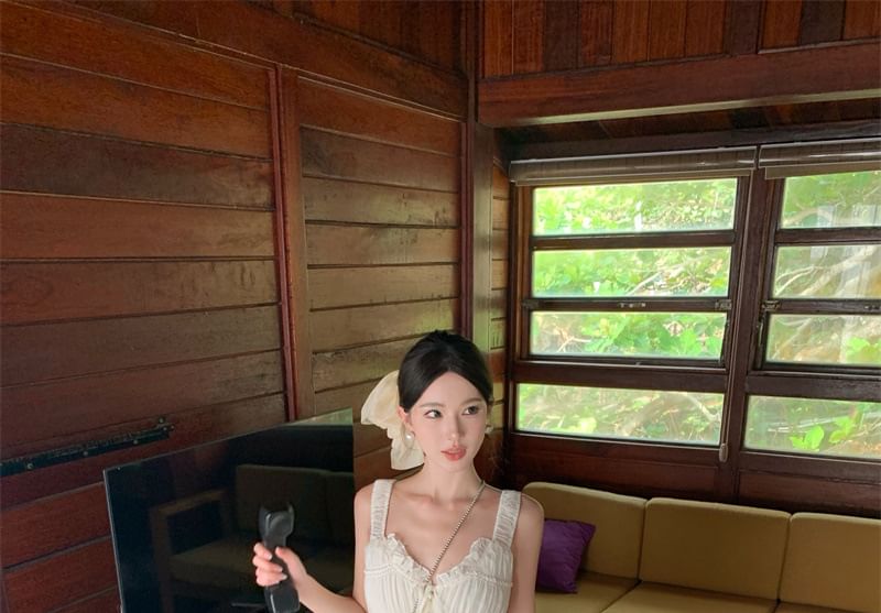 Sleeveless Plain Slit Button Maxi A-Line Dress