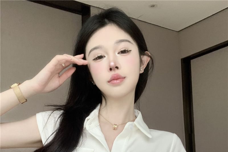 Cap Sleeve Collared Plain Flap Pocket Jersey Shirt
