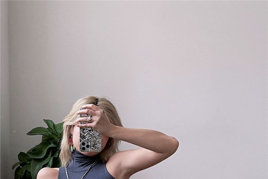 Sleeveless Turtleneck Plain Slim-Fit Dress