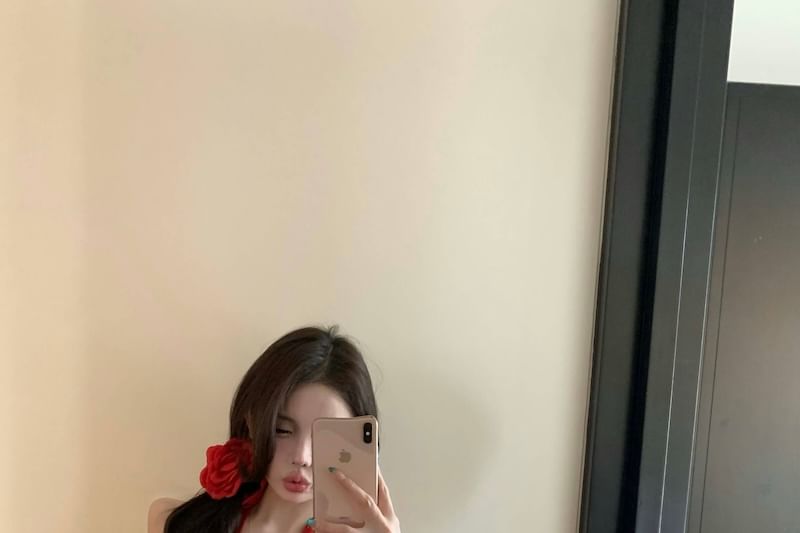 Top Plain Dotted Ruffle Hem Halter-Neck
