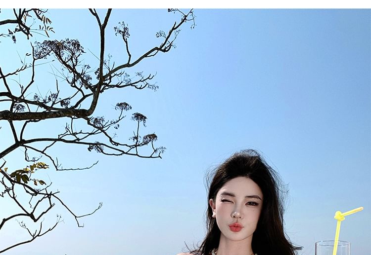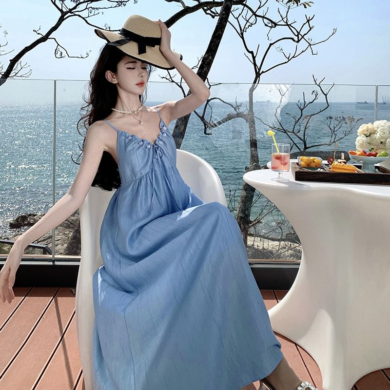 A-Line Maxi V-Neck Strap Ruched Spaghetti Dress Plain