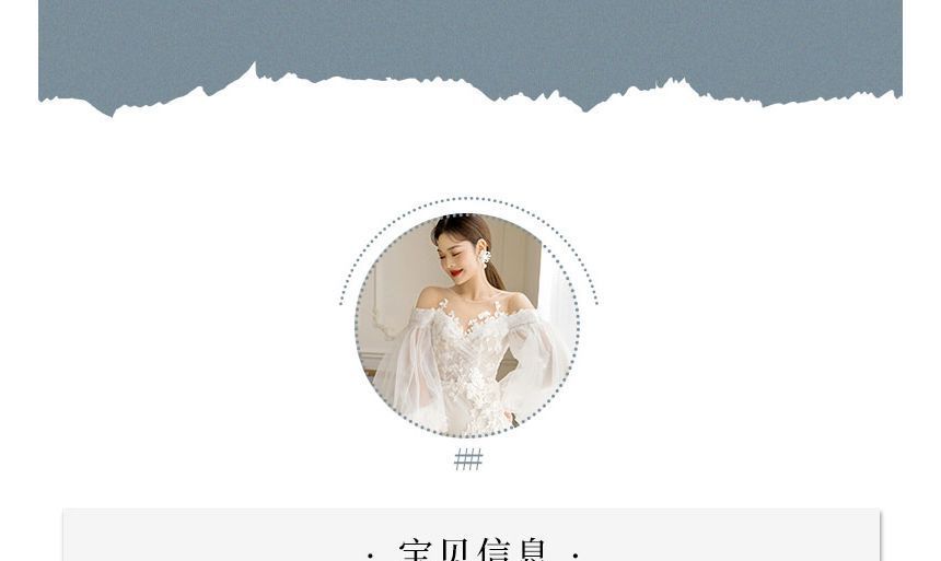 Balloon Sleeve Cold Shoulder Plain Flower Applique Mesh A-Line Wedding Gown