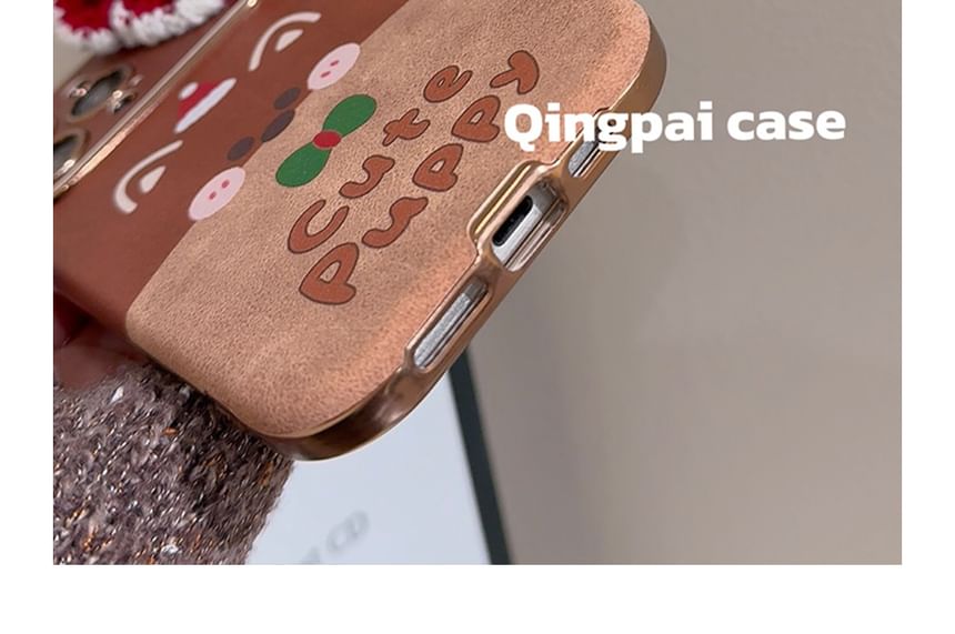 Christmas Dog Phone Case / Mini Knit Beanie Adhesive Decoration / Set - iPhone 16 Pro Max / 16 Pro / 16 Plus / 16 / 15 Pro Max / 15 Pro / 15 Plus / 15 / 14 Pro Max / 14 Pro / 14 Plus / 14 / 13 Pro Max / 13 Pro / 13 / 13 Mini