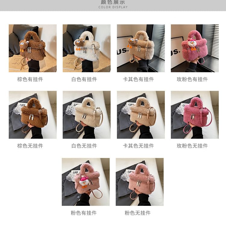 Faux Shearling Crossbody Bag / Bag Charm / Set
