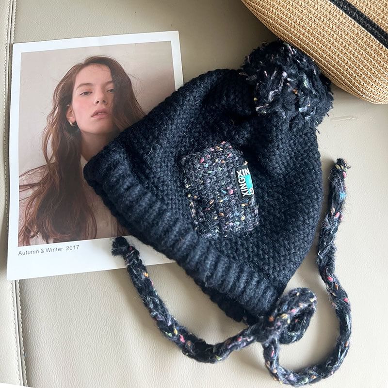 Melange Pom Pom Earflap Hat