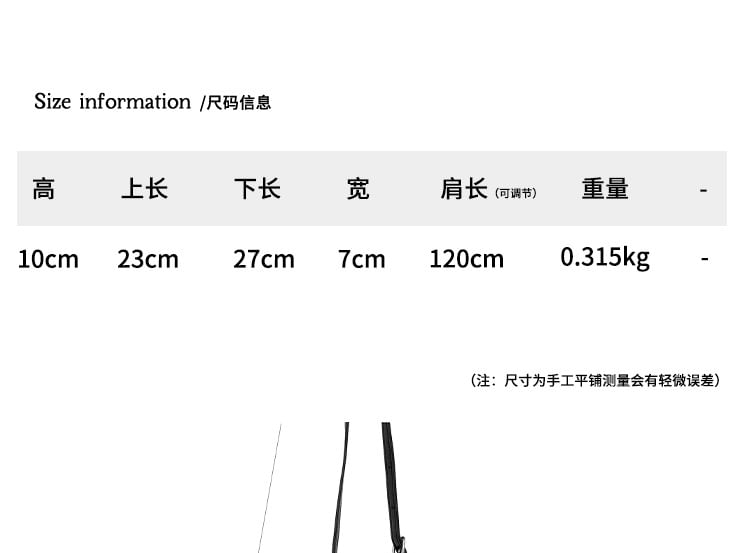 | Height | Upper Length | Bottom Length | Width | Strap Length |
