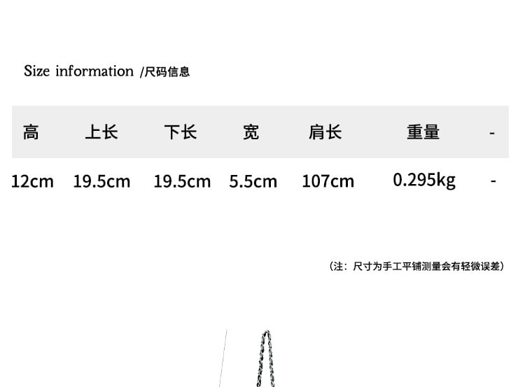 | Upper Width | Bottom Width | Height | Thickness | Strap Length |