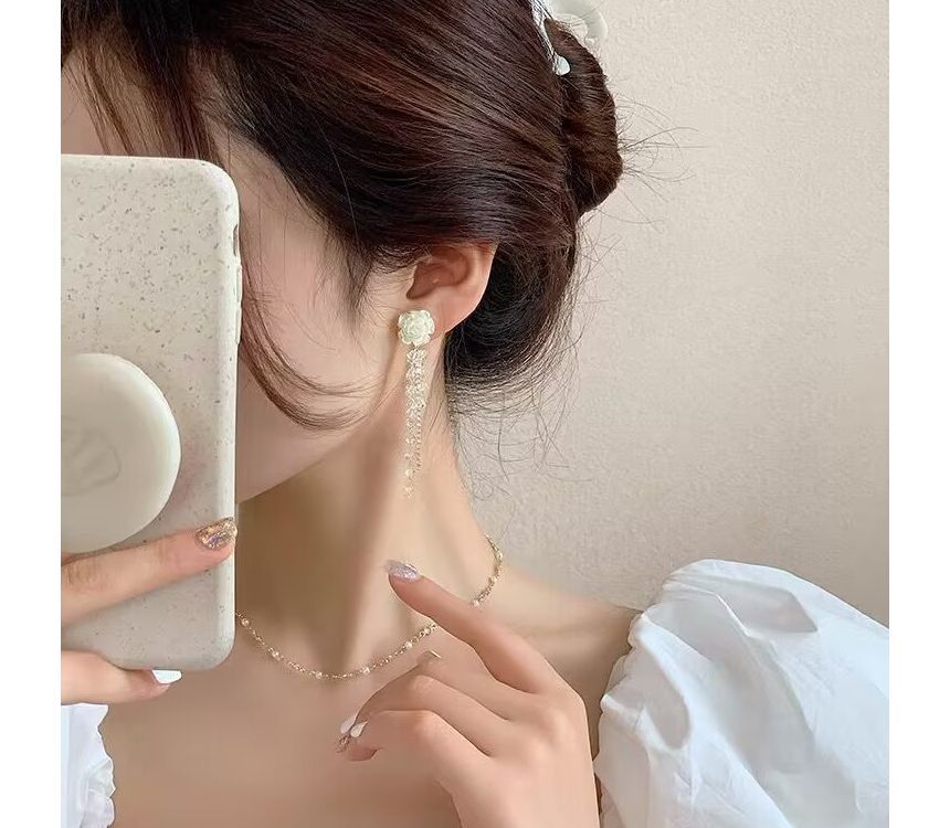 Floral Faux Alloy Crystal Earring Fringed
