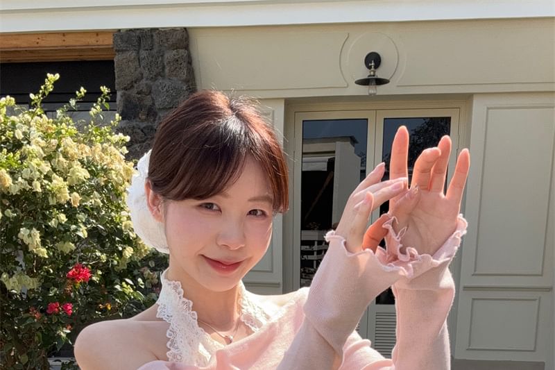 Lace Fit Mock Tee Slim Panel Halter Long-Sleeve Two-Piece