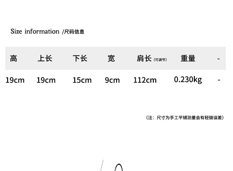 | Upper Length | Bottom Length | Height | Width | Strap Length |