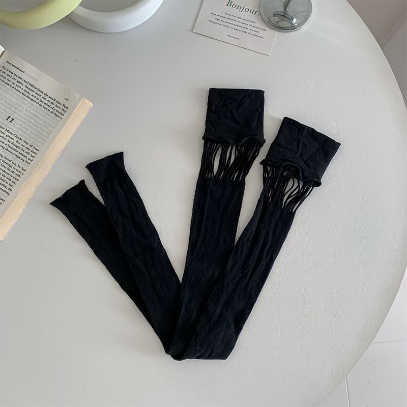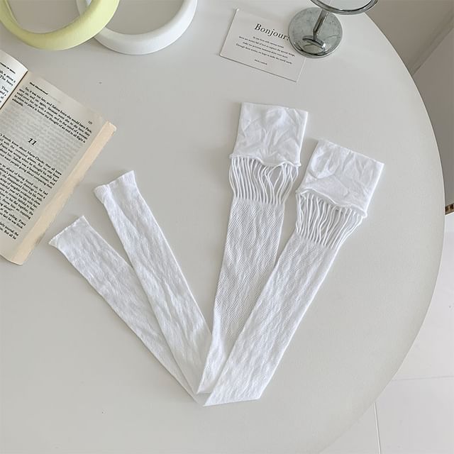 Leopard Patterned Cutout Lace Over-the-Knee Socks