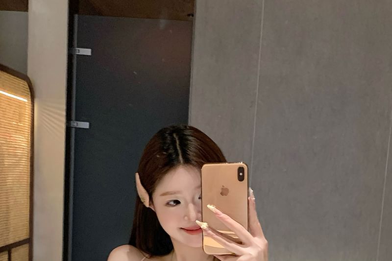 Panel Bow Beaded Fit Halter Slim Top Camisole Lace