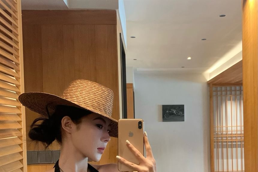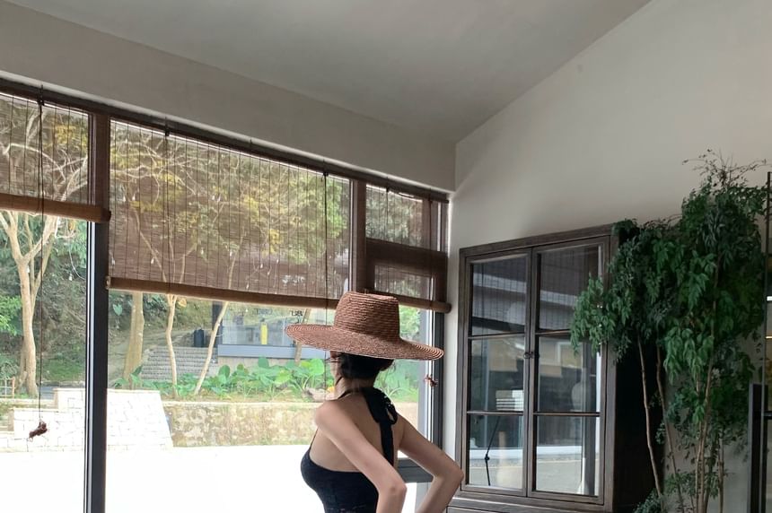 Halter Plain Lace Top / High Waist Plain Wide Leg Pants