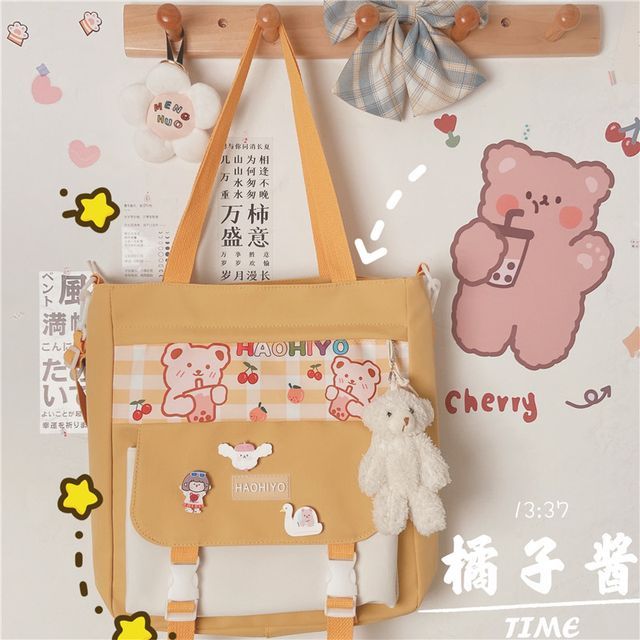 Color: With Taiyaki Head Cat Charm & Random Badge - Black
