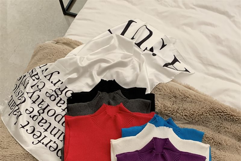 Plain Crop Ribbed Neck Top Sleeveless Knit Mock