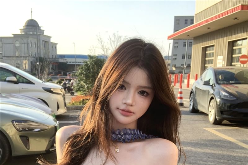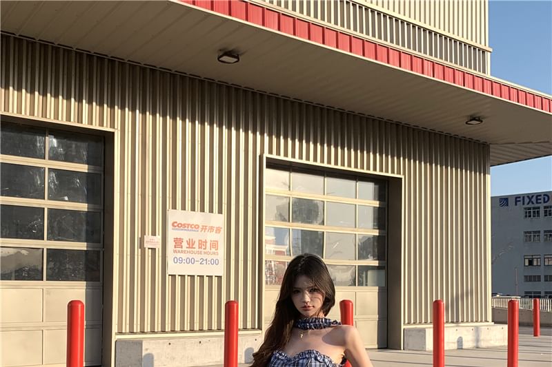 Plain Pants Wide / Leg Frill Tube Rise Mid Plaid Top Bustier Suit