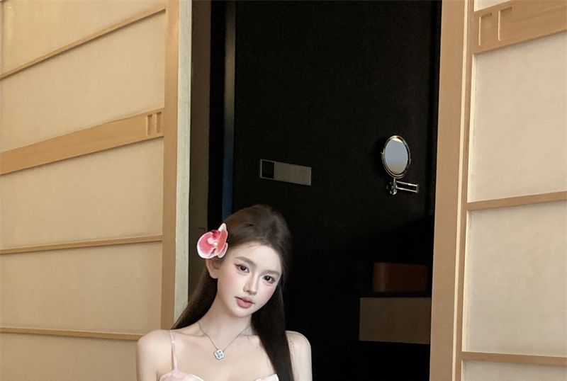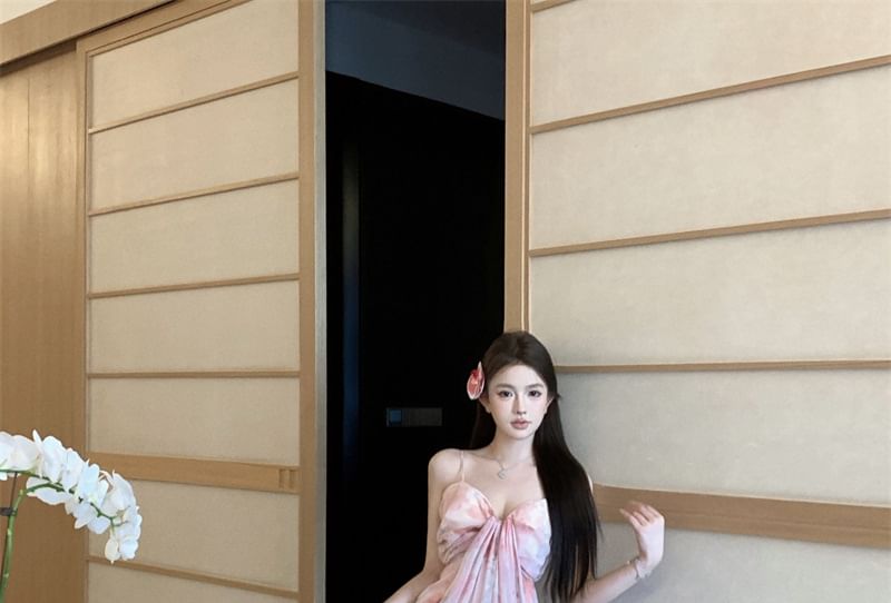 Print Spaghetti Strap A-Line Dress Maxi Floral Ruched V-Neck