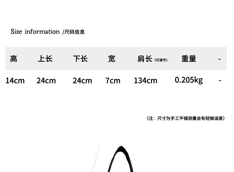 | Height | Upper Length | Bottom Length | Width | Strap Length |