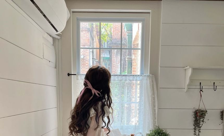 Sleeve Embroidered Cap Dress Bow Round Ruffle Mini A-Line Neck
