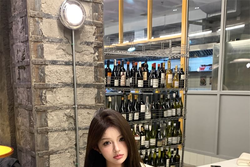 Striped Blouse Long-Sleeve Off-Shoulder Belt A-Line / Crop Panel Smocked Waist Mini Skirt Mock High Set Two-Piece