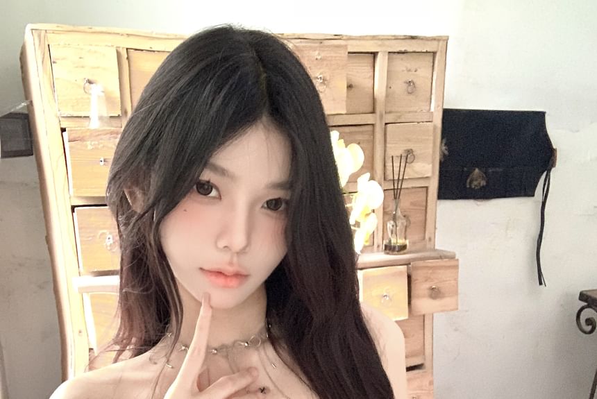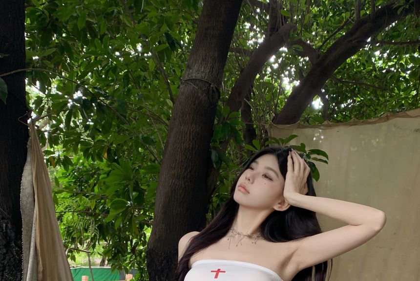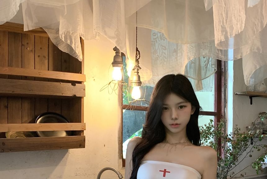 Strapless Lettering Top / Mid Rise Plain Skort
