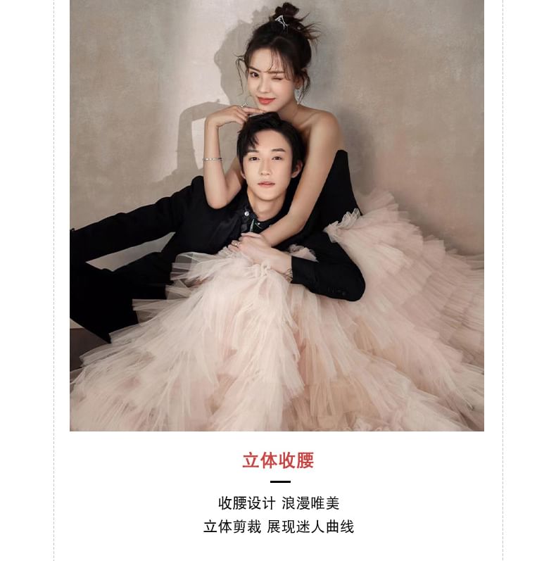 Two A-Line Tone Ruffle Gown Strapless Ball