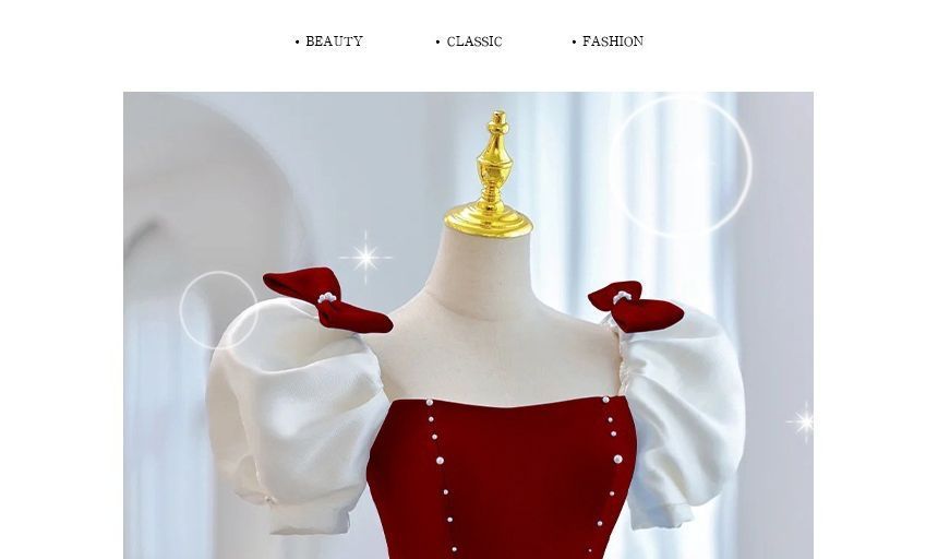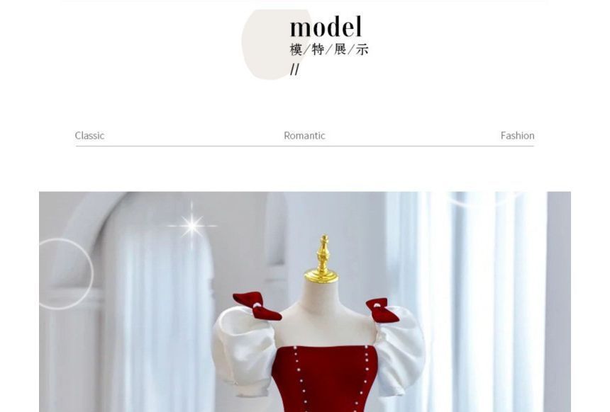 Bow Puff-Sleeve Tone A-Line Evening Two Gown