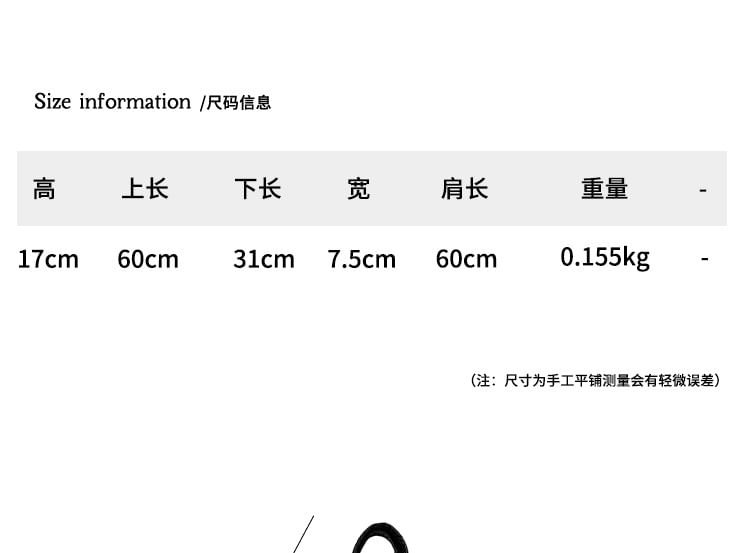 | Upper Width | Bottom Width | Height | Thickness | Strap Length |