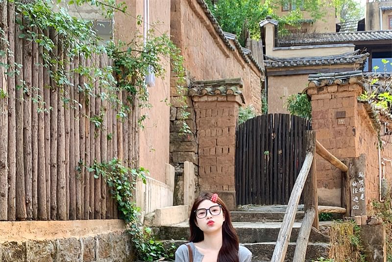 Dress Strap Cardigan Mini A-Line / Floral Spaghetti Melange Crop