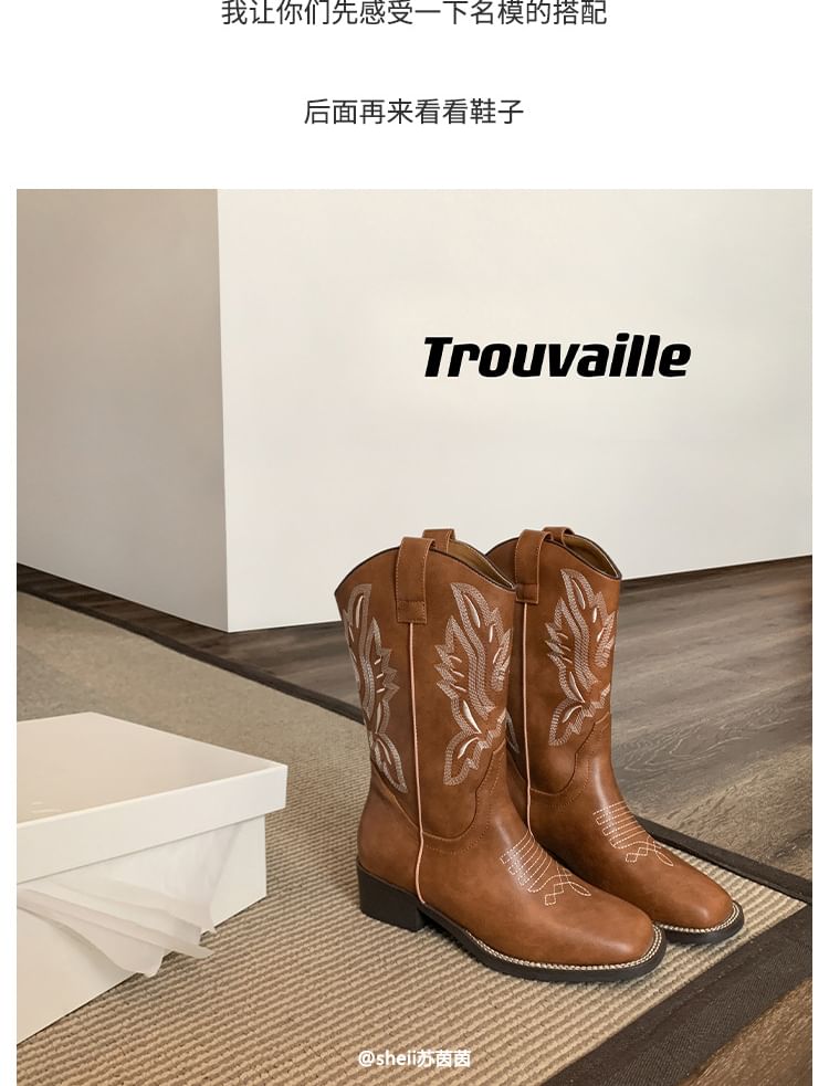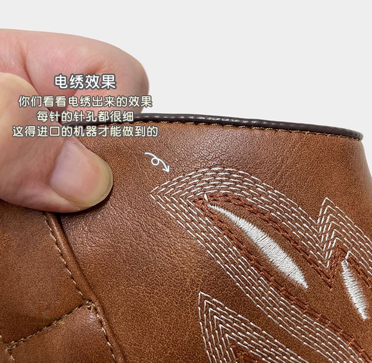 Embroidered Chunky Heel Mid