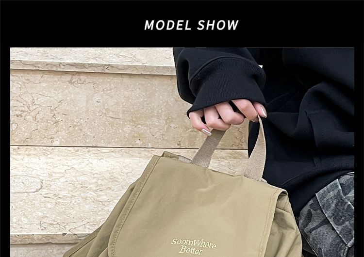 Embroidered Lettering Buckled Nylon Backpack Flap