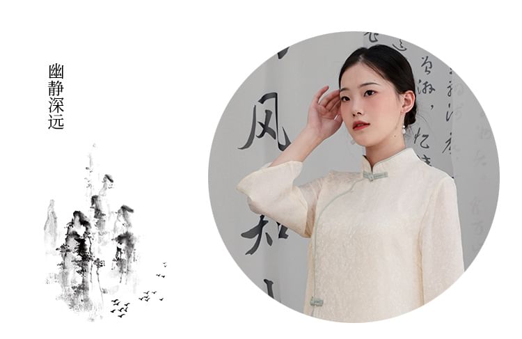 Flared-Sleeve Two Tone Maxi Hanfu Dress / Mid Rise Plain Wide Leg Pants