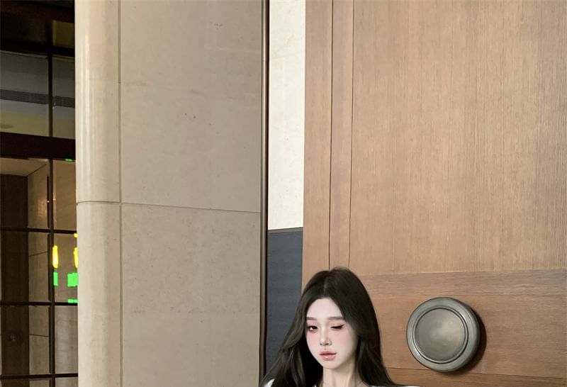 Front / A-Line Skirt Jacket Lace Bustier Rise Open Mini High Top Cropped Plain