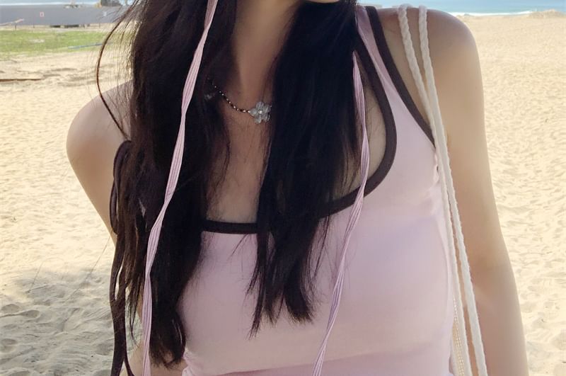 Lettering Applique Striped Sun Hat
