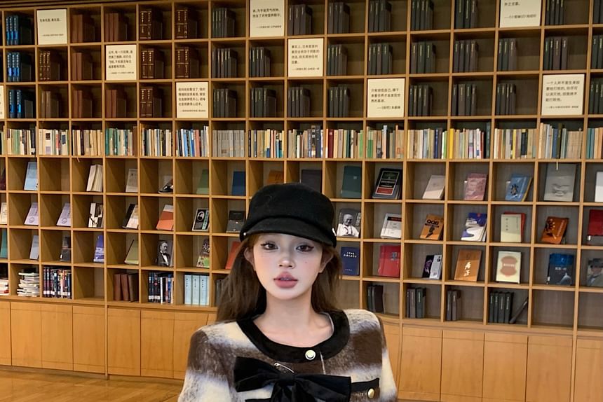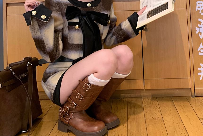 High Accent Neck Pencil Skirt Jacket Button-Up / Mini Plaid Crew Contrast Crop Rise Trim Bow