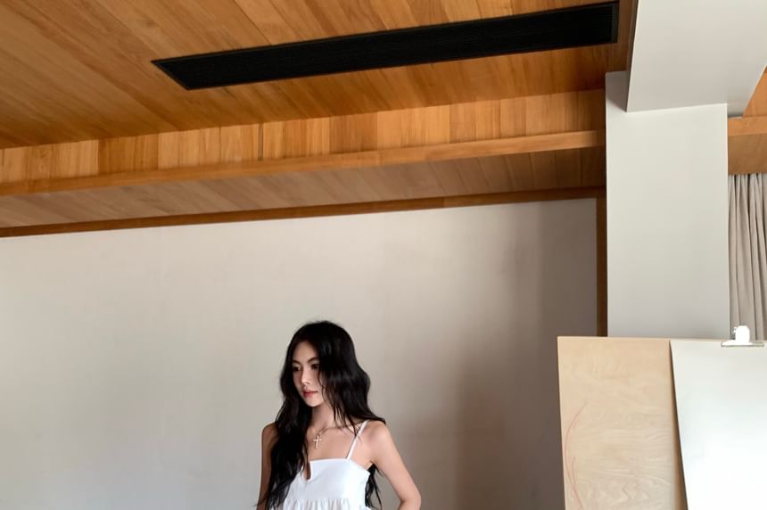 Notch Neck Plain Camisole Top / High Waist Floral Print Wide Leg Pants