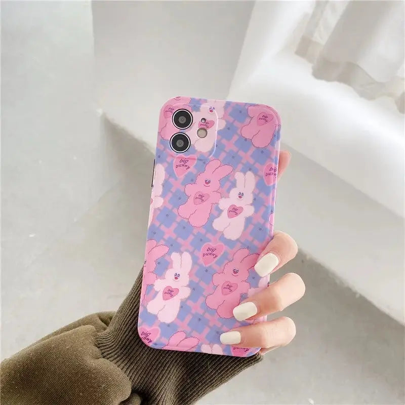 Kawaii Bunny Printing Plaid iPhone Case BP120