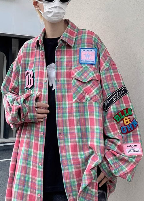 French Navy Plaid Pockets Cotton Shirt Men Spring