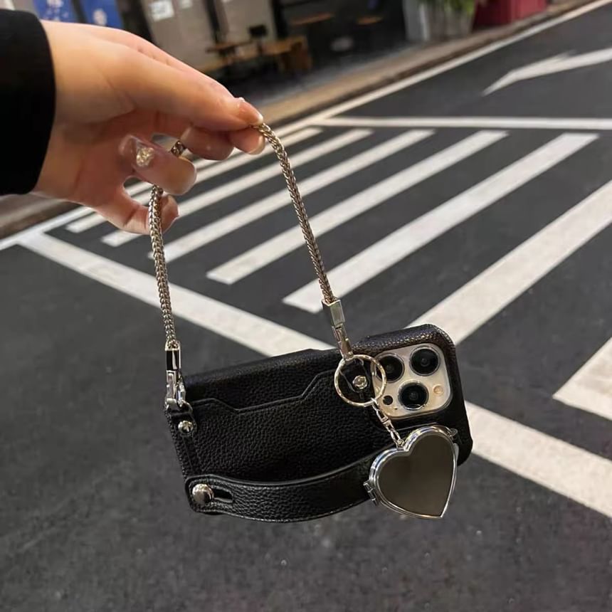 Heart Mirrored Faux Leather Phone Case