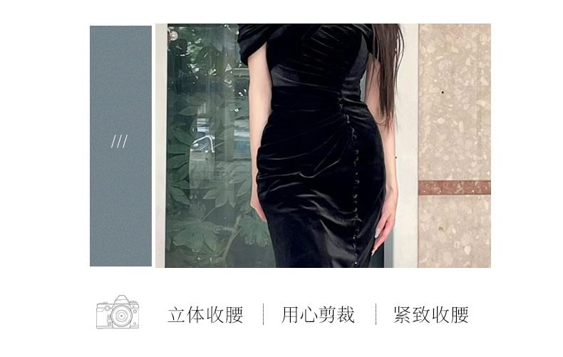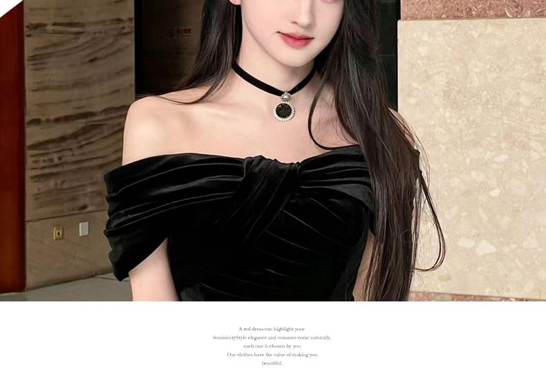 Off-Shoulder Plain Knot Ruched Mermaid Evening Gown