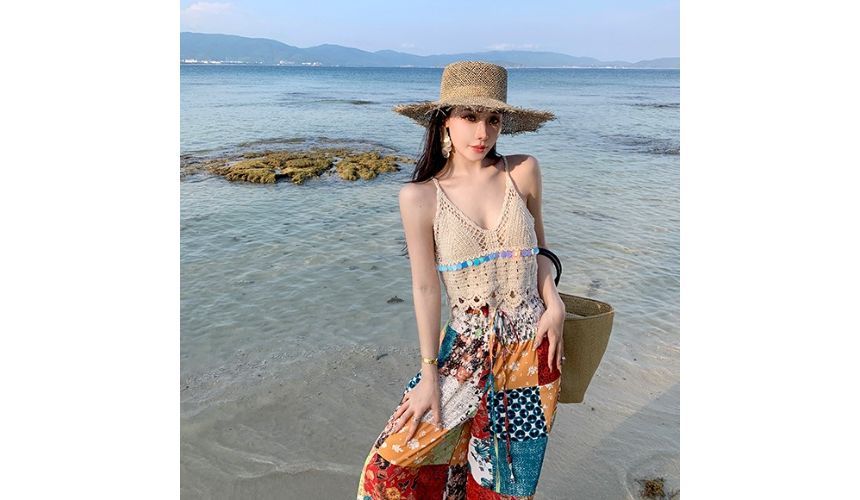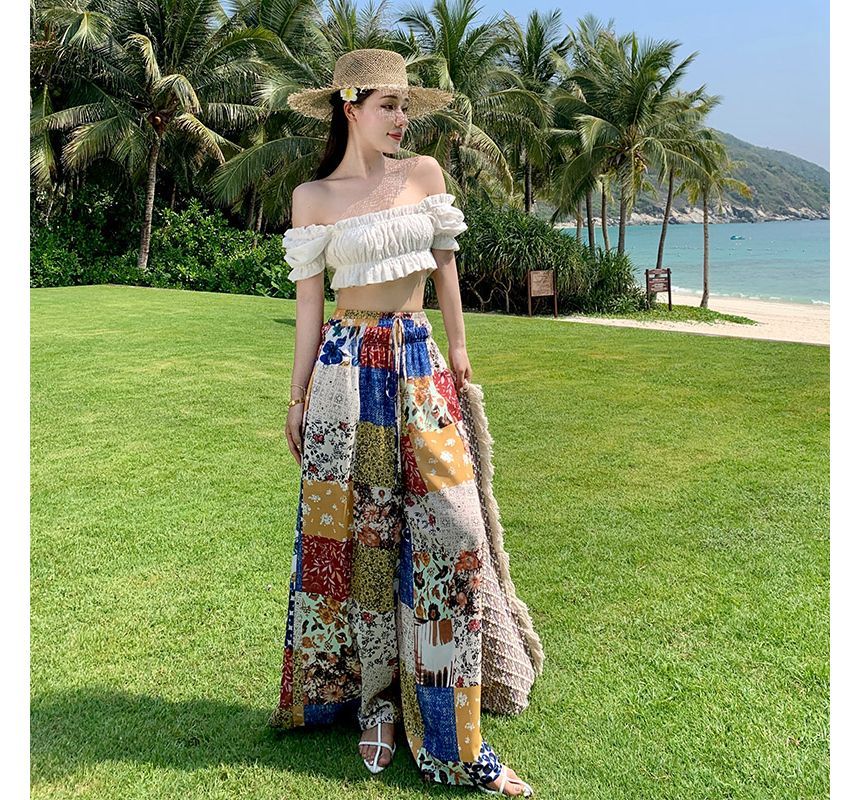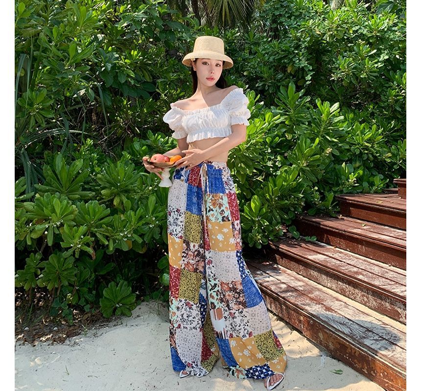 Off-Shoulder Plain Ruffled Smocked Crop Blouse