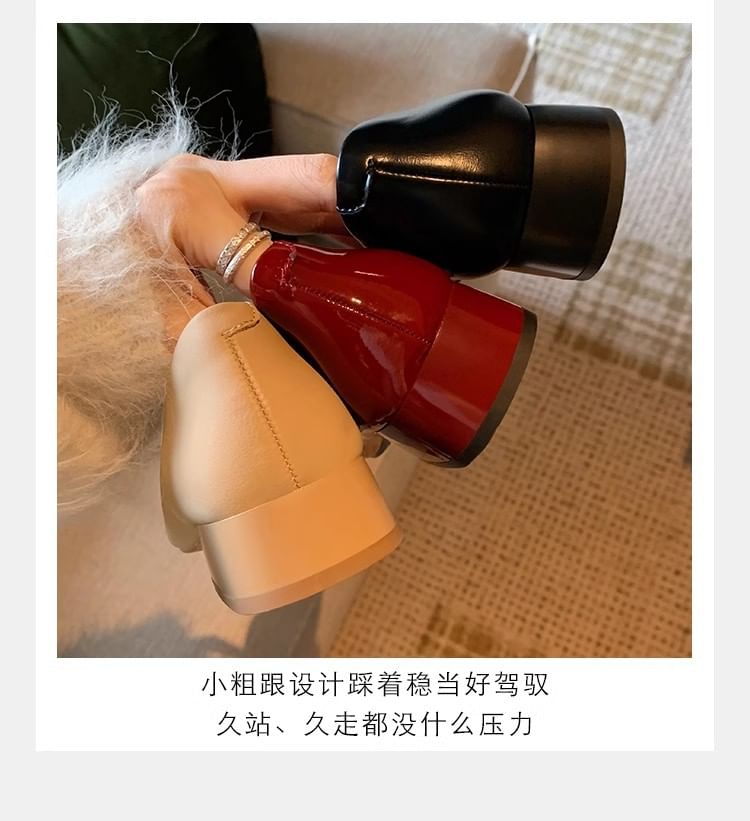 Chunky Heel Pointed Toe Plain Faux Leather Pumps